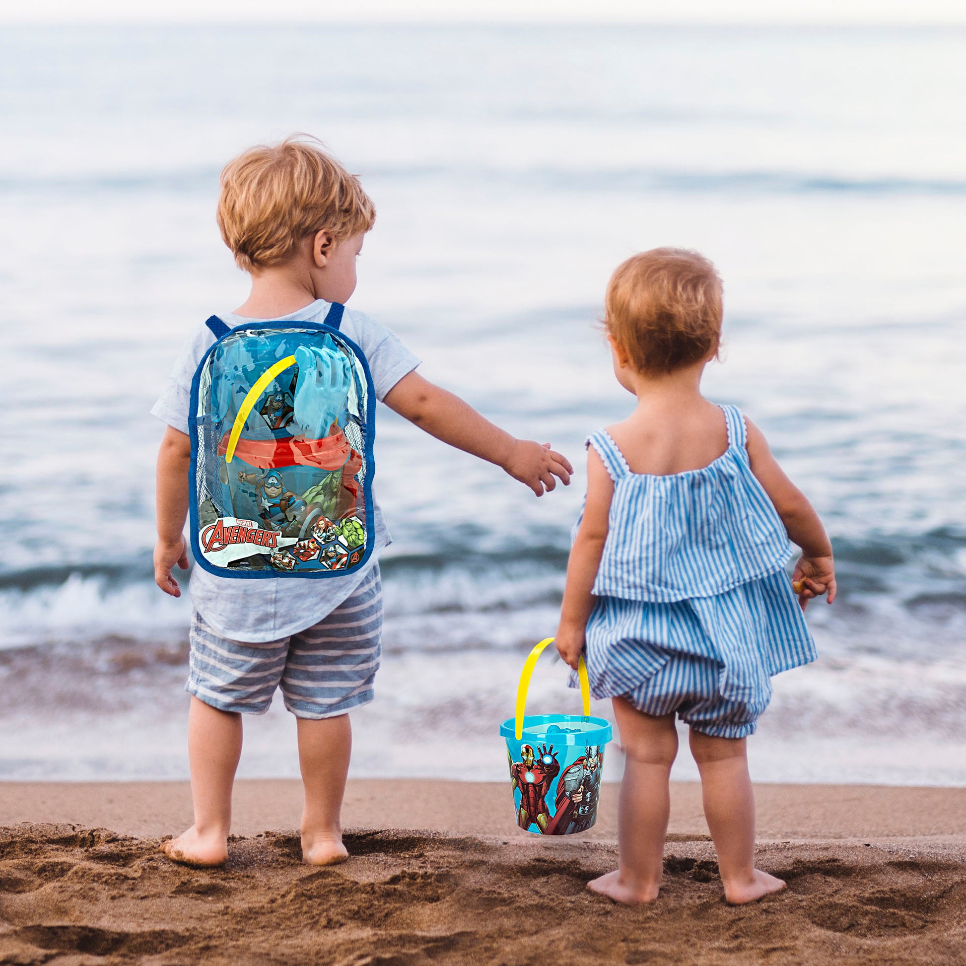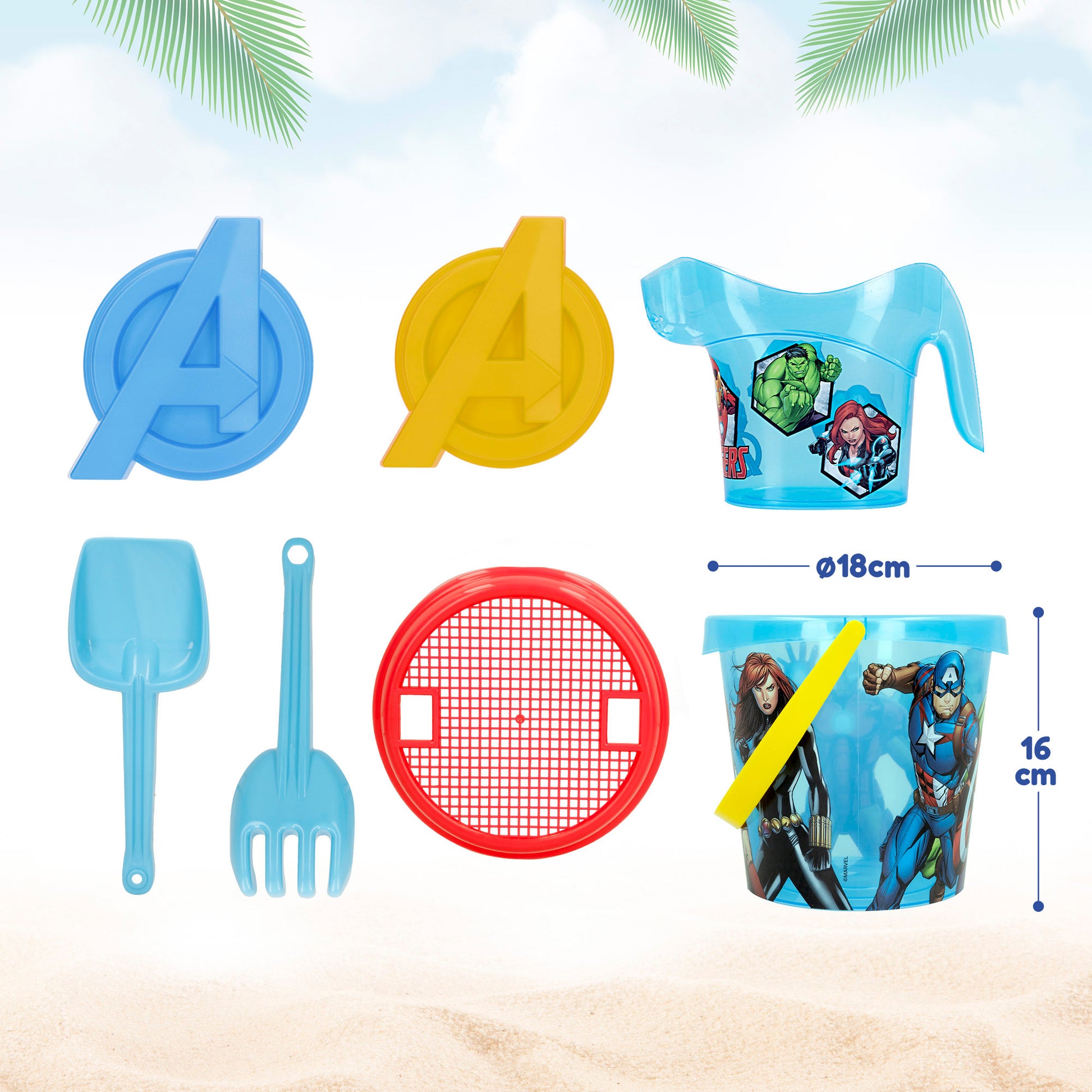 Balde de praia dos Vingadores Ø18 cm com acessórios e mochila para transporte