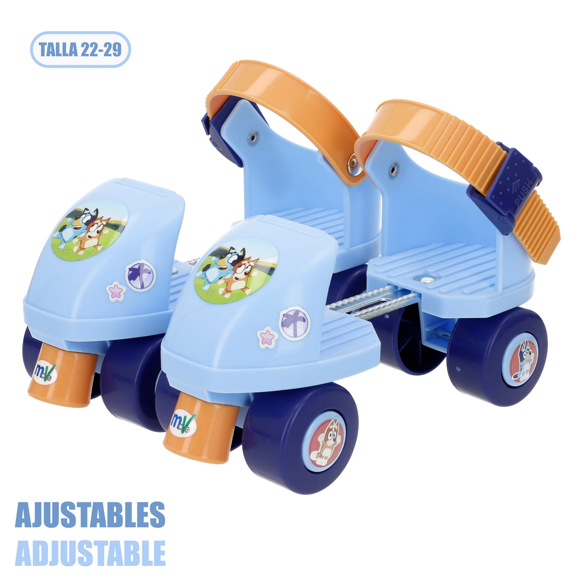 Começa a patinar com a Bluey e vive novas aventuras com estes coloridos patins de quatro rodas! Com um design alegre e decorados com as personagens favoritas da série, Bongo e Bluey, são perfeitos para os mais pequenos darem os primeiros passos no mundo da patinagem em segurança e muita diversão.