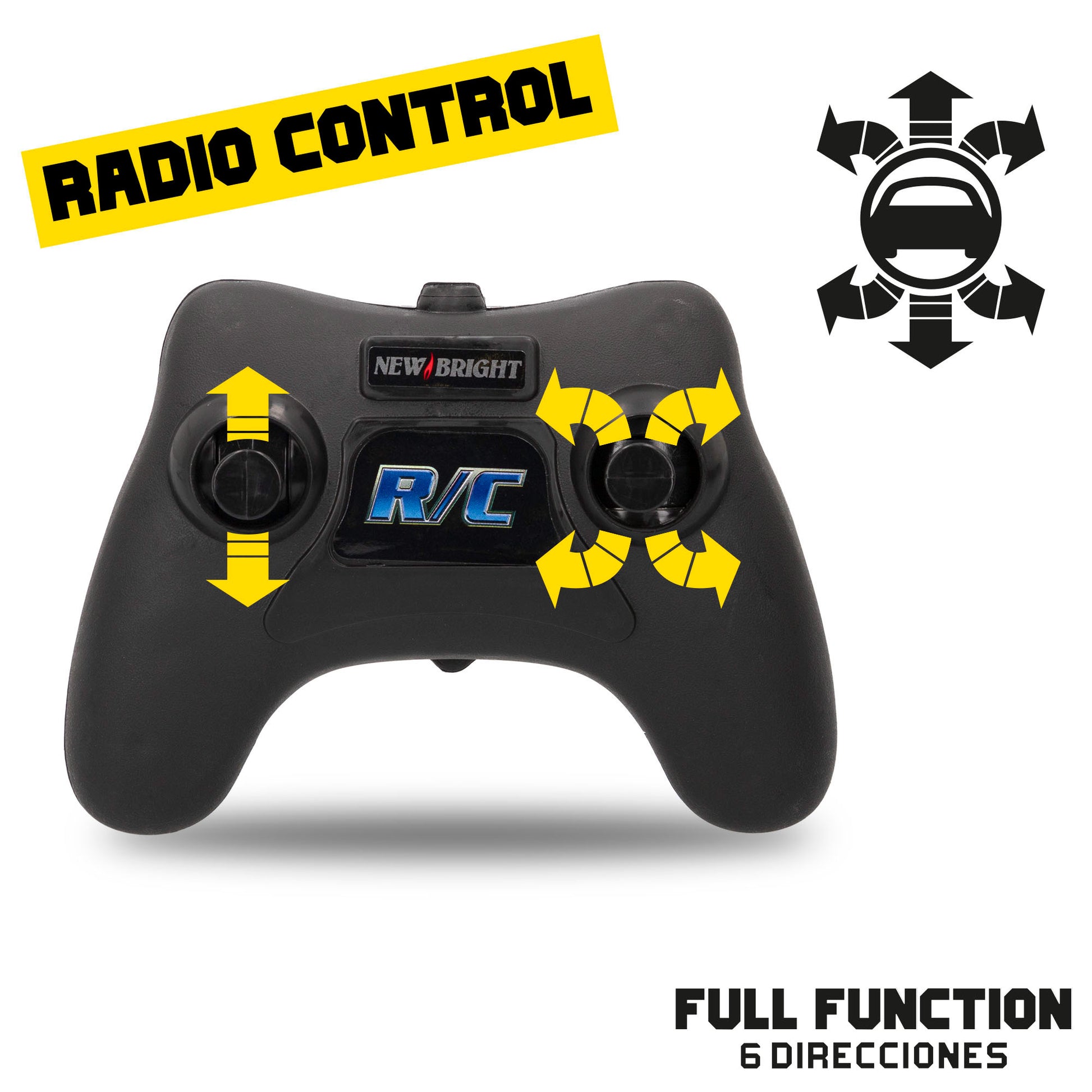 Controla este carro de rádio controlo com o comando incluído e move-o em 6 direções (para a frente, para trás, para a frente à esquerda, para a frente à direita, para trás à direita e para trás à esquerda). Pode conduzir sobre os terrenos mais difíceis e ultrapassar qualquer obstáculo sem perder o controlo, graças às suas 4 rodas grandes com ranhuras profundas que proporcionam uma melhor aderência à estrada.