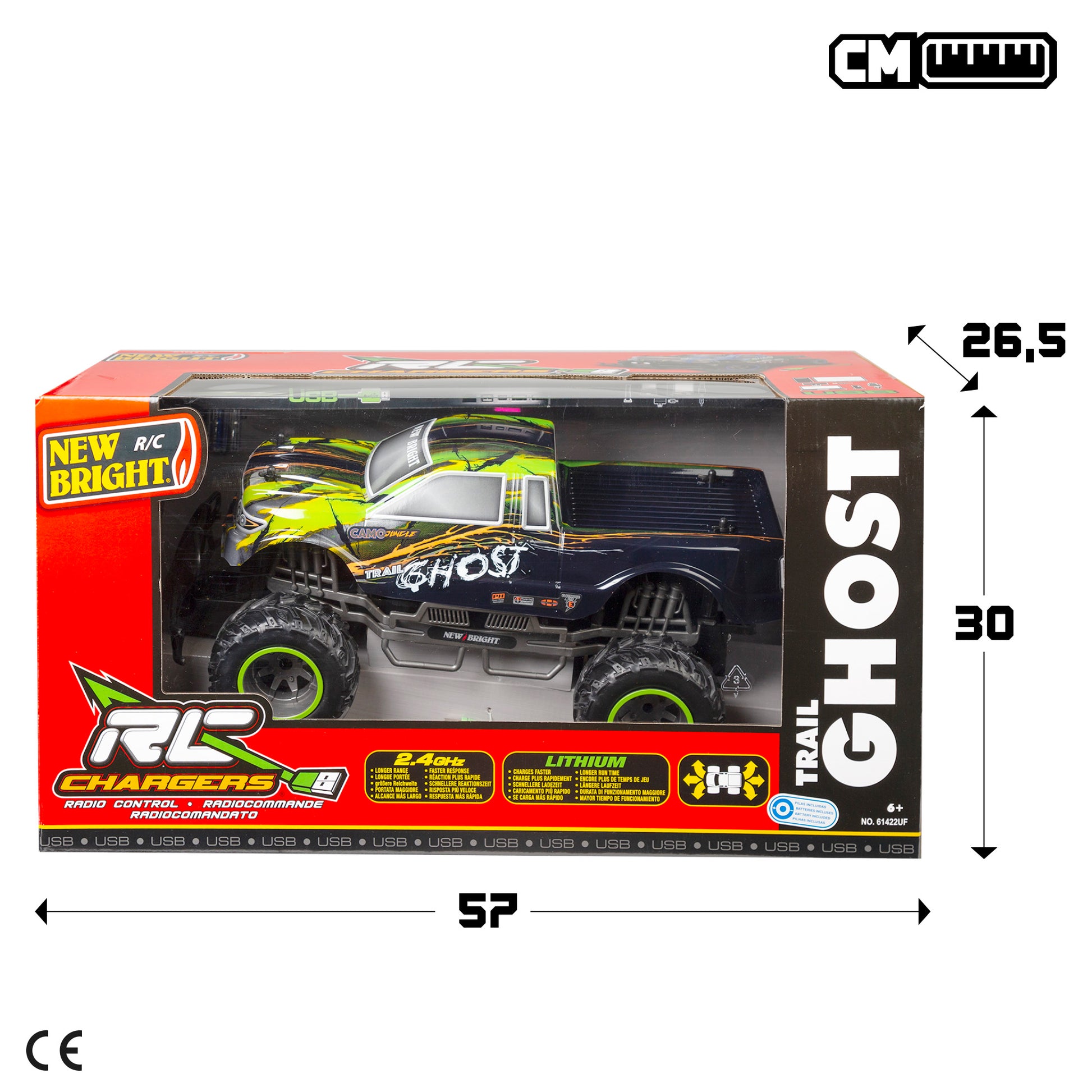 O carrinho telecomandado Camo Jungle New Bright é grande e tem uma carroçaria leve com um padrão camuflado em verde e preto. Opera a uma potente frequência de 2,4 GHz de longo alcance, permitindo-lhe controlar o seu veículo até 30 metros de distância e brincar com até 5 amigos em simultâneo, sem interferências. Inclui 2 pilhas AA para o comando e uma bateria recarregável de 9,6 V com cabo USB para o carrinho. Este brinquedo elétrico é recomendado para crianças a partir dos 6 anos. Ligue o seu 4x4 e sinta a adrenalina!