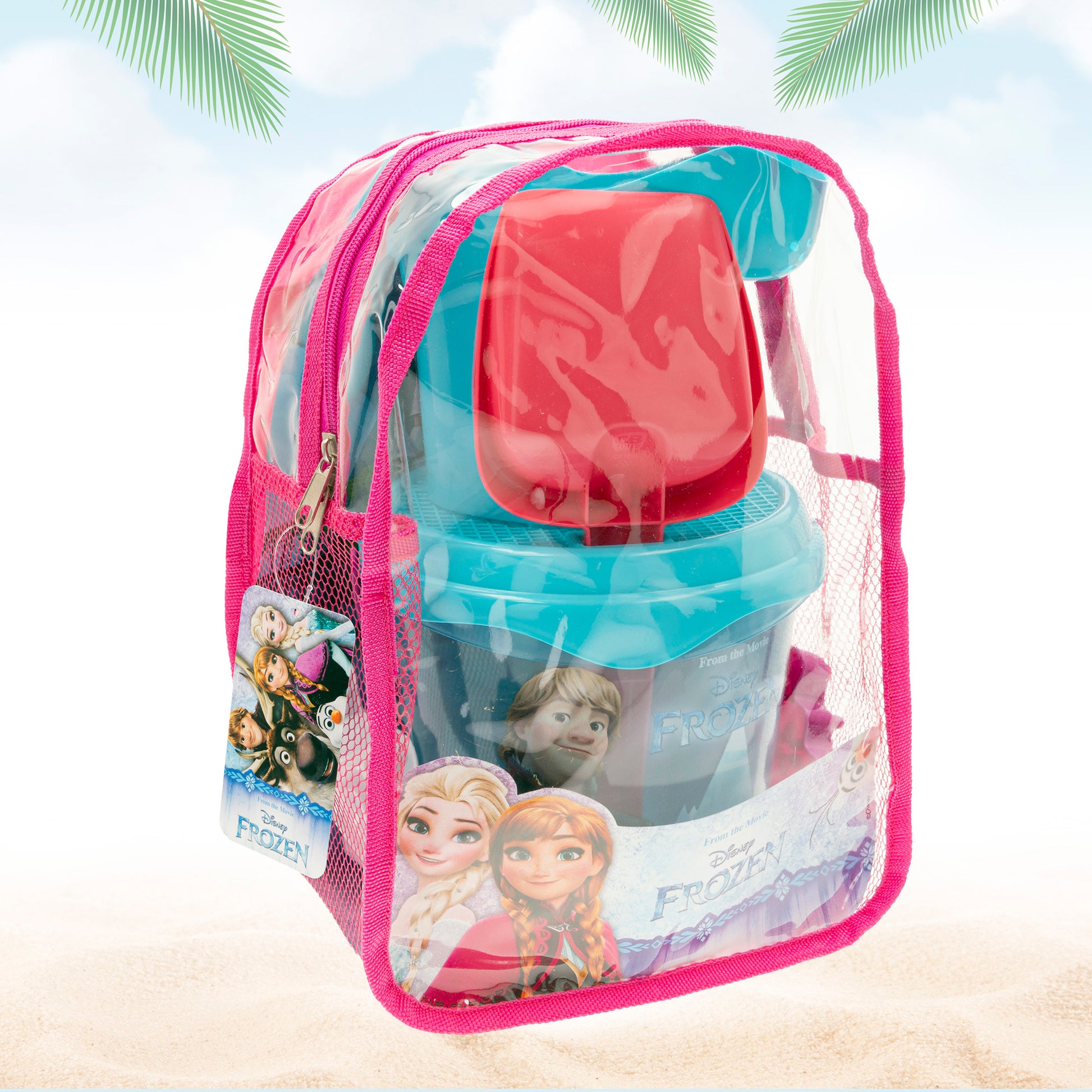 Conjunto de balde Frozen Beach com acessórios e mochila para transporte