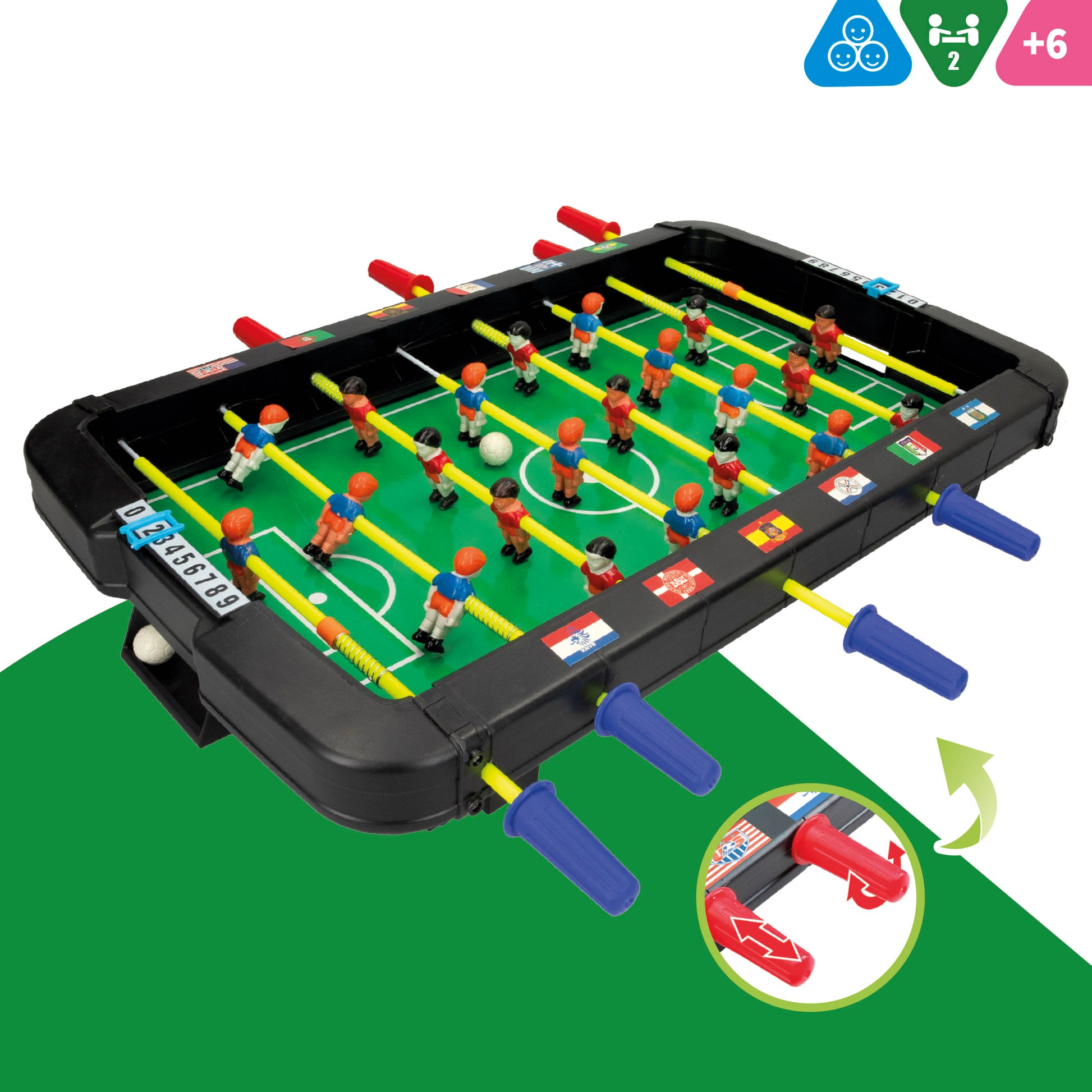 Viva a emoção do futebol no conforto da sua casa com este produto.pebolim infantil! Essefutebol de mesaAdapta-se perfeitamente a qualquer espaço, para que possa organizar jogos em qualquer canto da sua casa e libertar a emoção de um jogo de futebol a qualquer hora. Não precisa de muito espaço! Assuma o controlo dos seus jogadores e entre em ação. Hora de jogar e marcar golos!