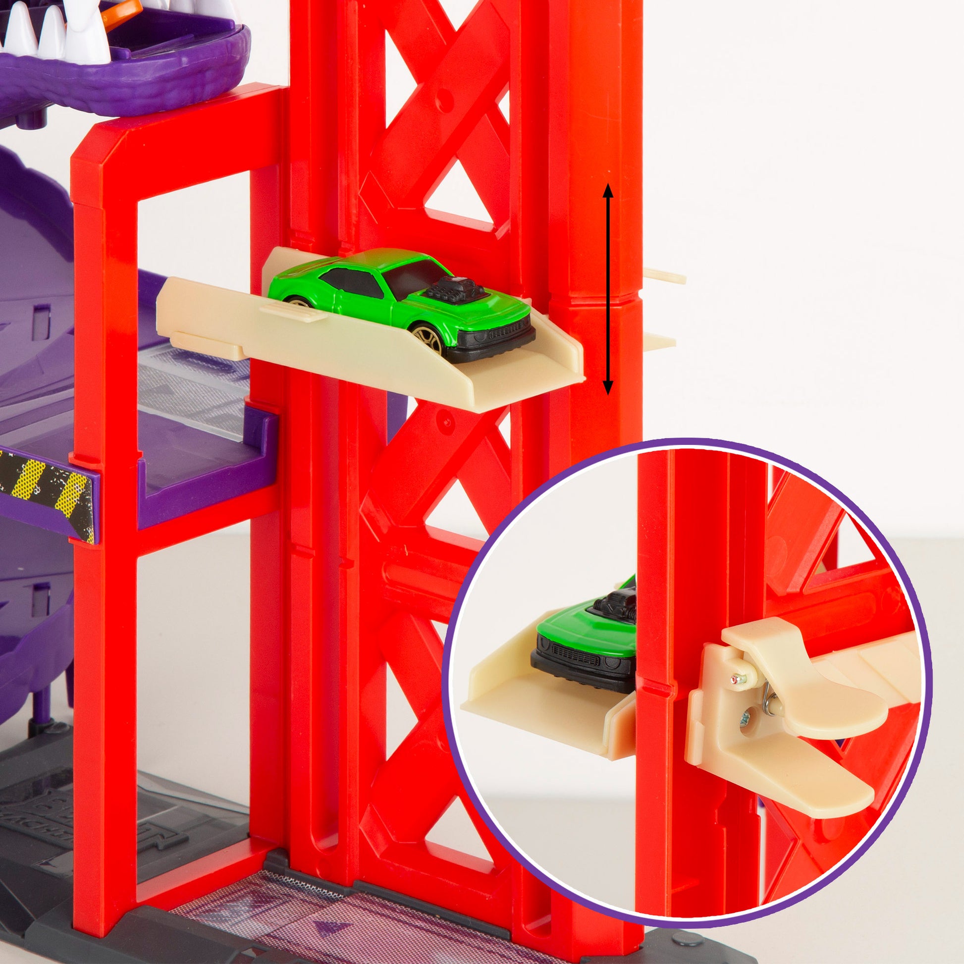 O Fosso dos Dragões não é apenas umpista de carrosÉ um desafio repleto de velocidade, ação e fantasia! Com o seuelevador de automóveise o seu lançador integrado, os veículos descem através docircuito espiralEnfrentar o perigo do dragão. Ousar passar pelas suas mandíbulas ferozes e tornar-se o vencedor da corrida!