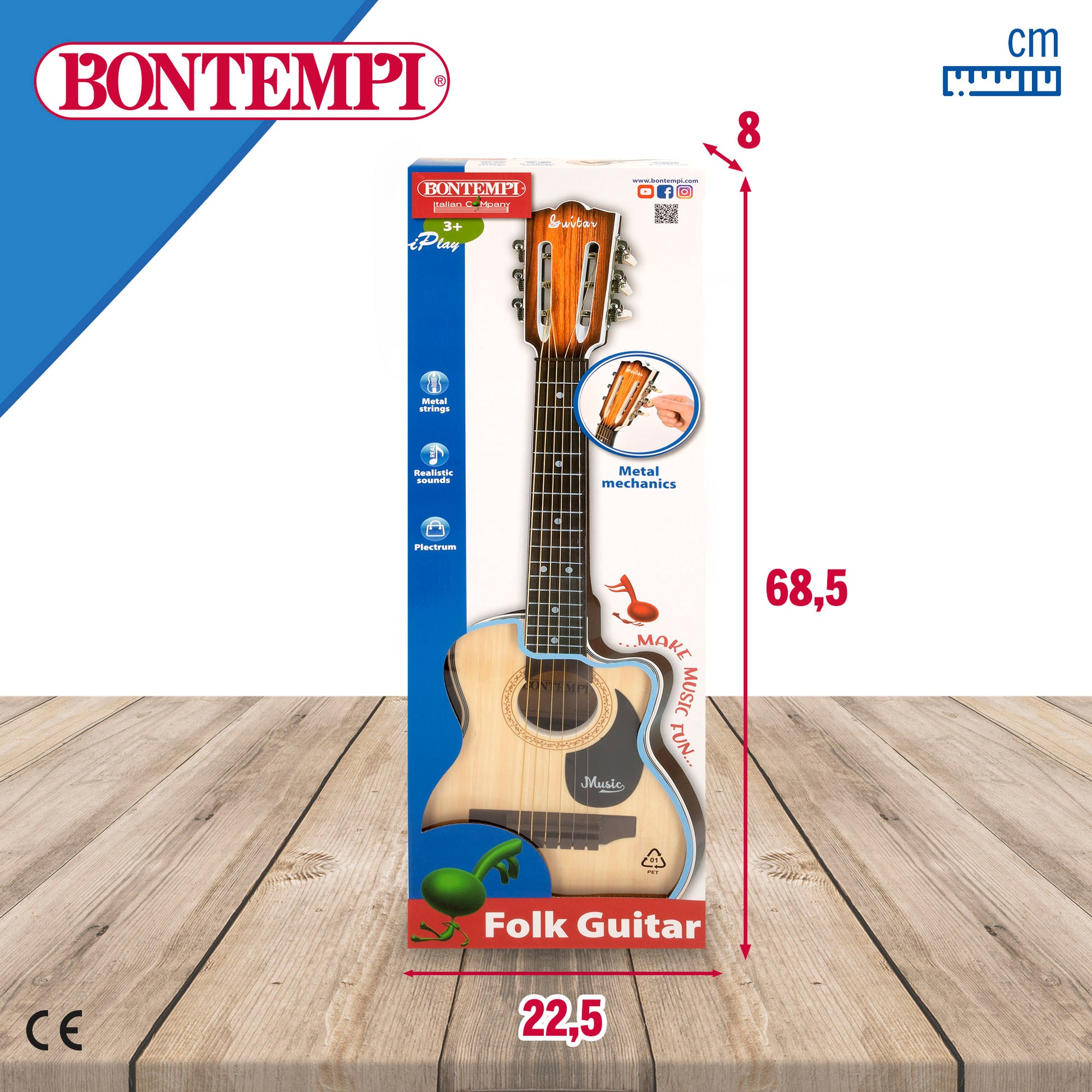 É apaixonado por instrumentos de corda? Comece a praticar com este fantástico violão folk da Bontempi! Com 68 cm de comprimento, é ideal para pequenos músicos. Fabricado em plástico, possui 6 cordas de metal afináveis e inclui uma palheta. Além disso, tem um som realista! Com este violão, as crianças não só se vão divertir a dar asas à imaginação e à criatividade, como também vão melhorar a destreza manual e estimular a audição.