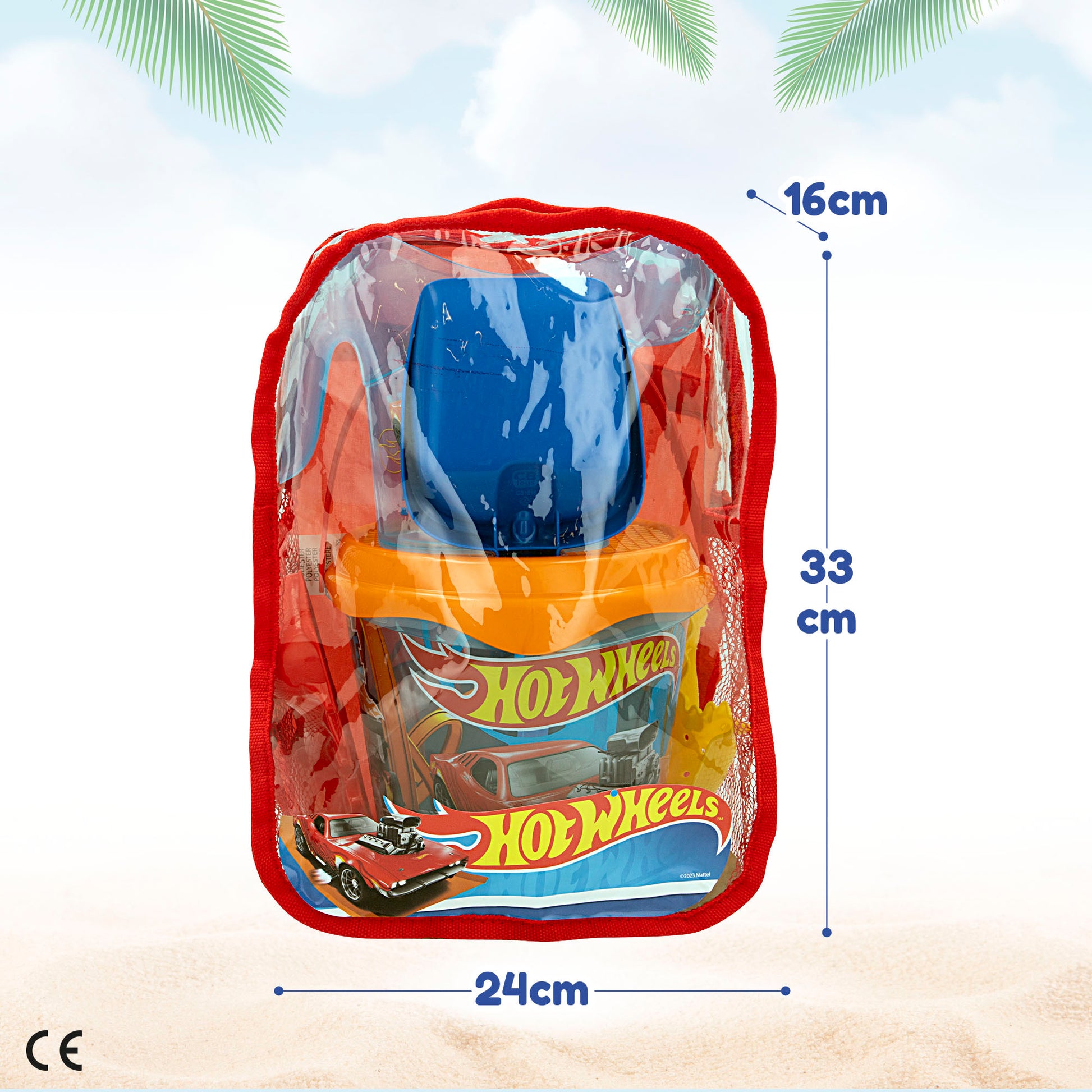 Este conjunto de praia inclui umcubo semitransparente com ilustrações de carros,um regador,um ancinho,uma páedois moldes de dinossaurocom pequenos orifícios para filtrar a água ou a areia.O cubo tem lidarpara facilitar o seu transporte de um local para outro ea tampa é uma peneiracom orifícios para colocar a pá e o ancinho.Todo o conjunto vem dentro de uma mochila transparente com fecho e alças para guardar e transportar todos os acessórios.Leve os seus pertences com conforto e praticidade para a praia. A mochila possui laterais e fundo em rede para evitar que a areia ou a água danifiquem os seus acessórios.