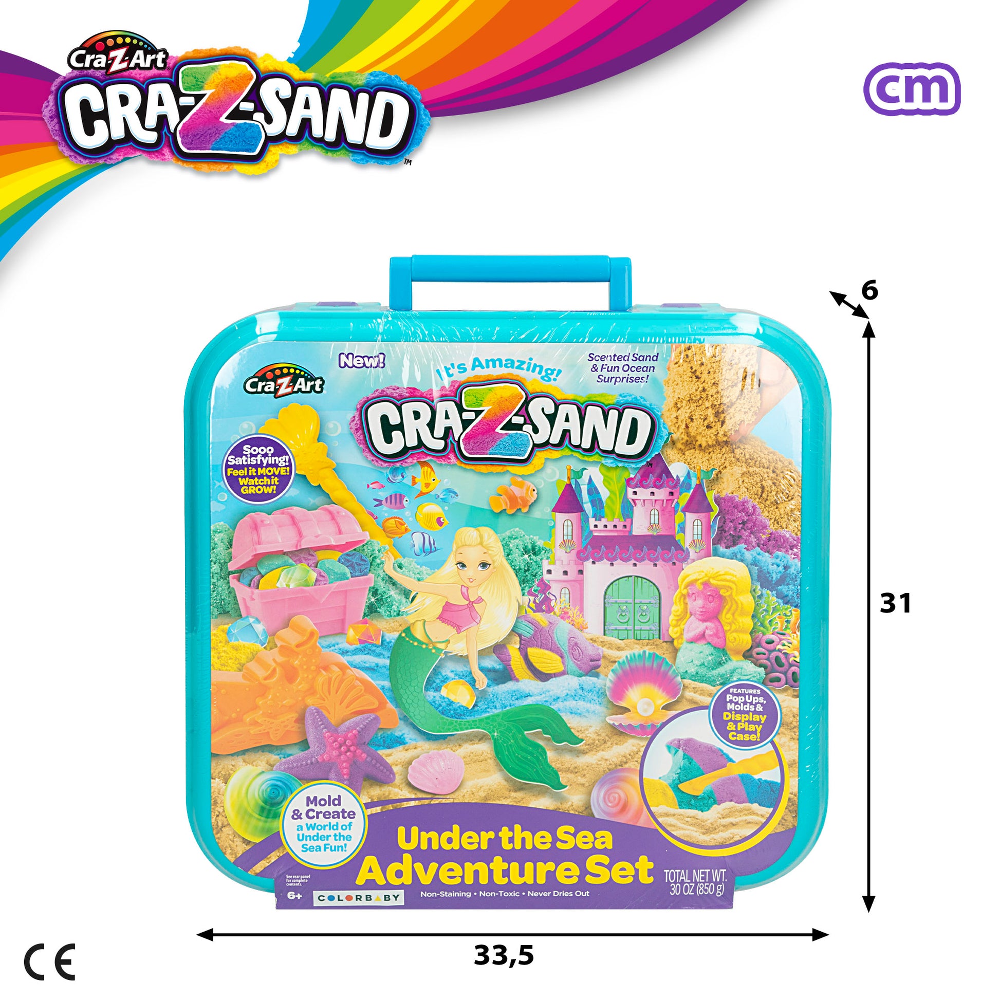 Prepare-se para criar um oceano de aventuras com oConjunto de areia mágica Cra-Z-Art para criançasImagine a suavidade e a maleabilidade da areia mágica entre os seus dedos, com que sePoderá construir um reino subaquático.Infinito. Moldes de criaturas marinhas e um baú do tesouro aguardam para dar vida às suas histórias subaquáticas. A areia mágica é o seu passaporte para o fundo do oceano!