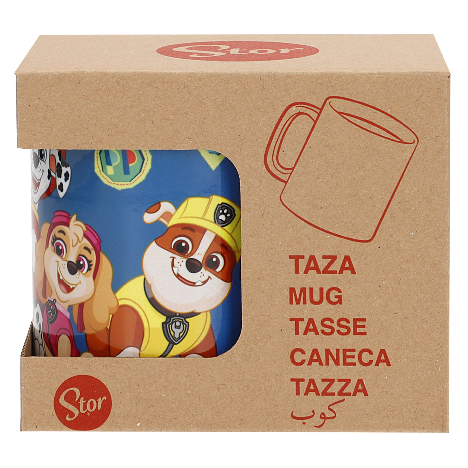 Inclui umcaneca de cerâmicaBolsa de alta qualidade com alça ergonómica. Decorada com ilustrações dos cachorros Chase, Everest, Marshall, Skye e Rubble, e disponível numa embalagemcaixa de cartãoCom janela, ideal para oferta ou coleção.