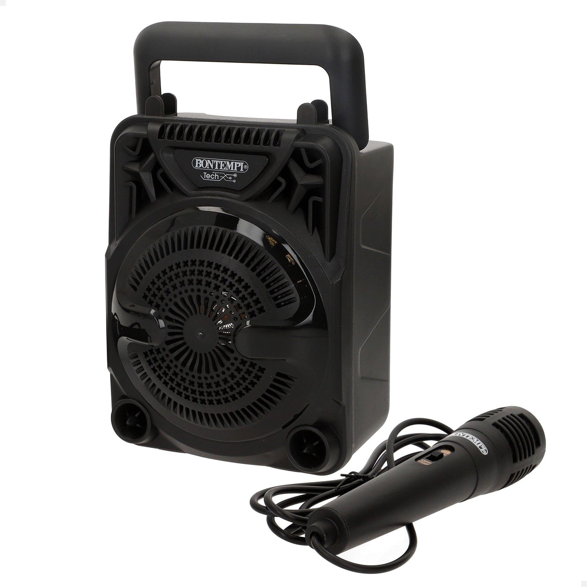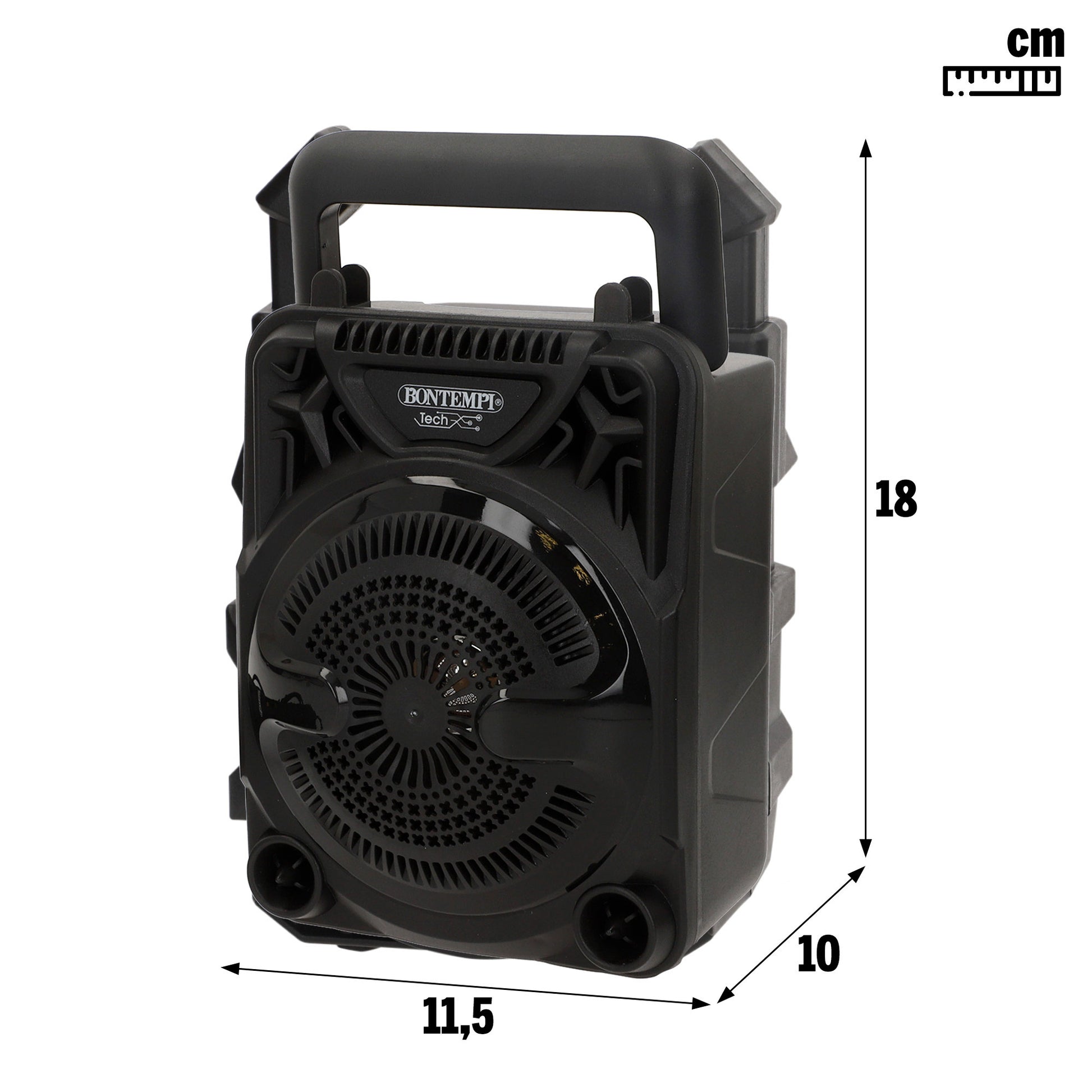 EsseColuna de som sem fios BontempiCom o seu design compacto de 11,5 x 10 x 18 cm e uma prática pega, é perfeito para levar música a qualquer evento, desde festas a sessões de karaoke. Possui efeitos de iluminação RGB que complementam o som nítido e potente. A sua conectividade versátil permite ligá-lo facilmente sem fios a dispositivos móveis, tablets ou PCs, ou utilizar uma pen USB, cartão microSD ou cabo auxiliar (não incluído) para ouvir as suas músicas favoritas. Inclui também uma função de rádio para sintonizar estações.