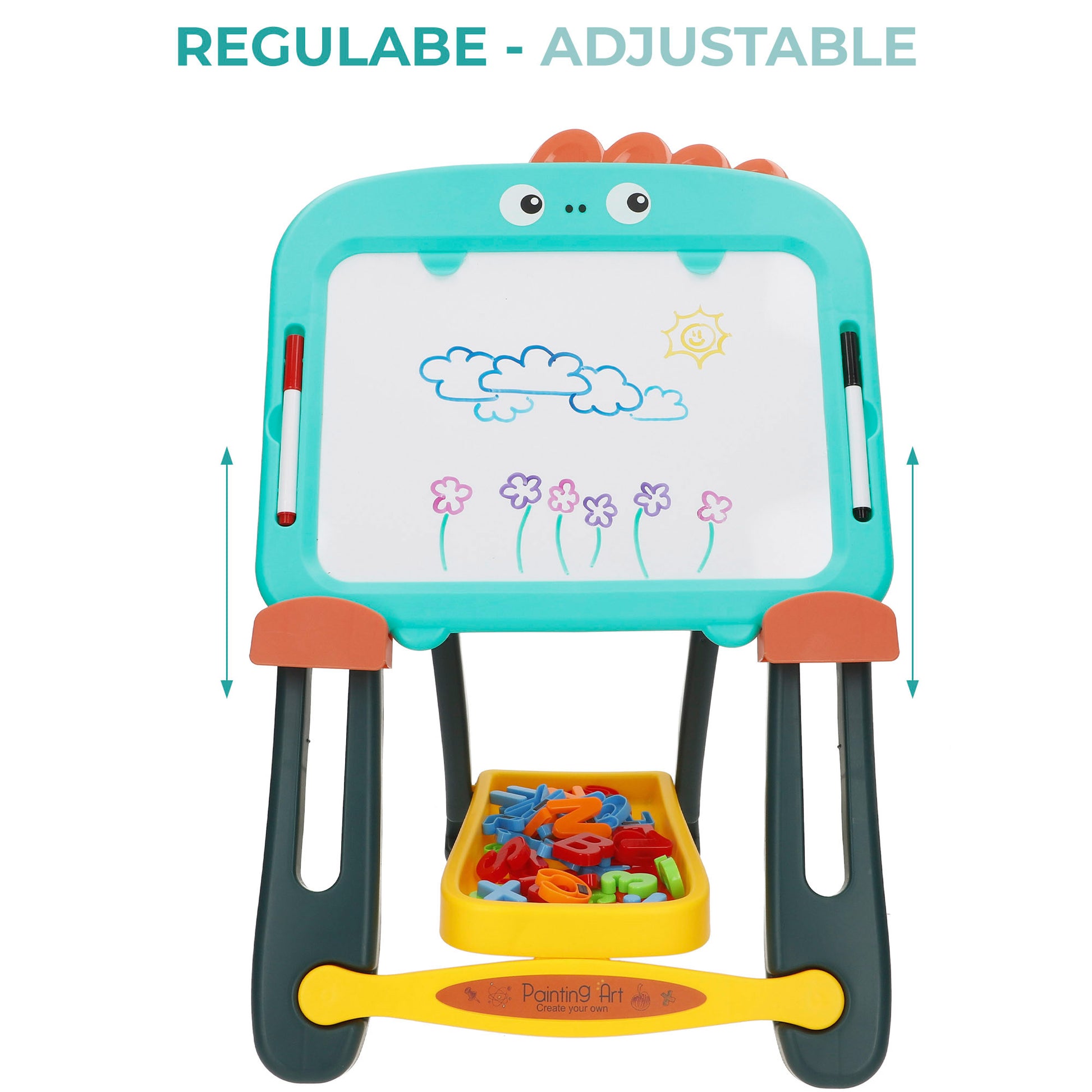 Quadro branco magnético infantilRecomendado para crianças a partir dos 3 anos.Tem um tamanho de30x33 cme o seuA altura é ajustável de 36 a 50 cm.Oferecendo maior conforto e facilidade de utilização.