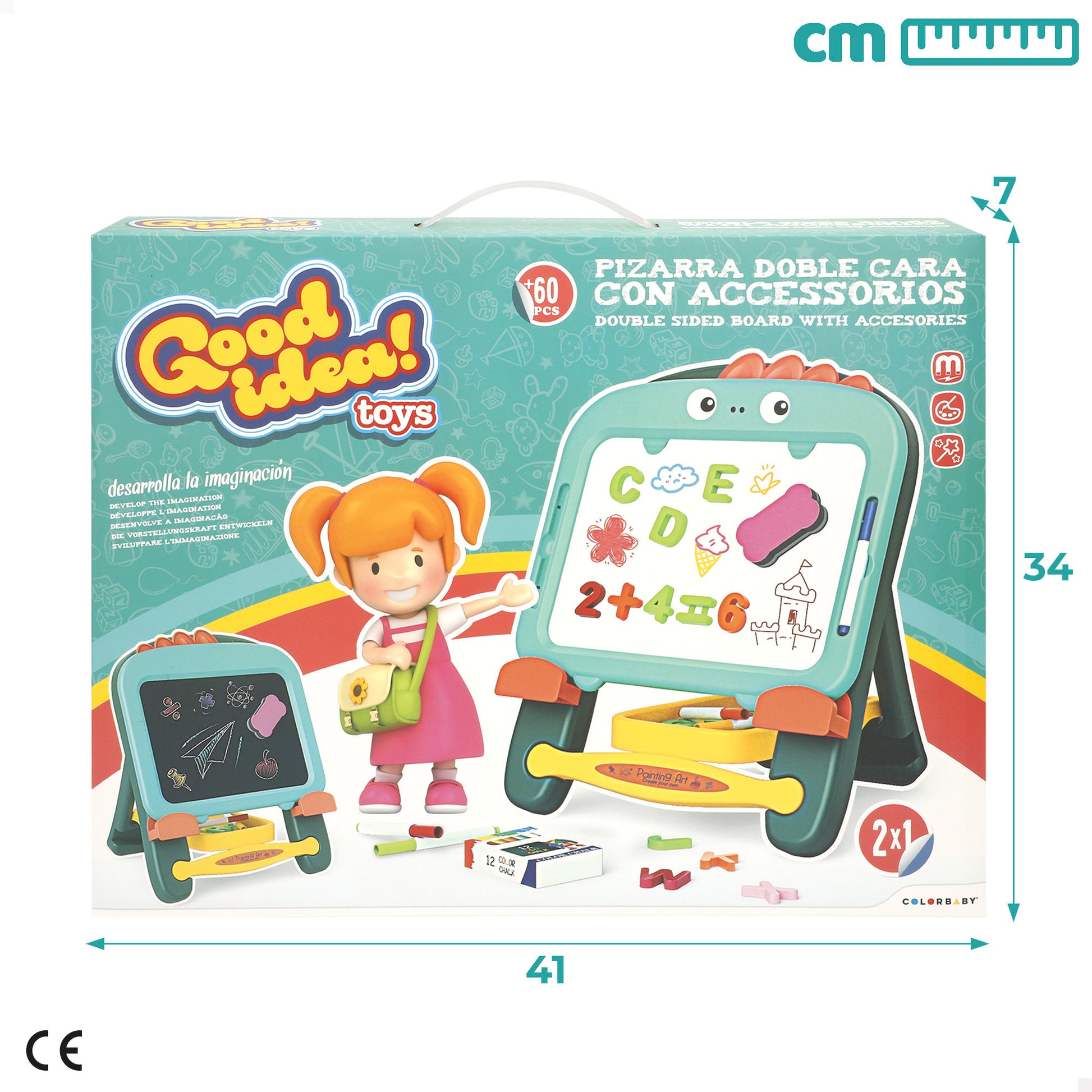 Essequadro magnético infantil dupla faceTem tudo o que precisa para libertar a sua criatividade e aprender brincando. Com esta prancheta de desenho de dupla face, pode desenhar, escrever e praticar as suas primeiras letras e números de diferentes formas. De um lado,quadro branco magnéticoÉ perfeito para utilizar com as letras e números magnéticos incluídos no conjunto, bem como com marcadores apagáveis que permitem escrever e desenhar livremente. Por outro lado, olousaÉ ideal para usar com giz colorido. Pode alternar facilmente entre os lados simplesmente virando o quadro!