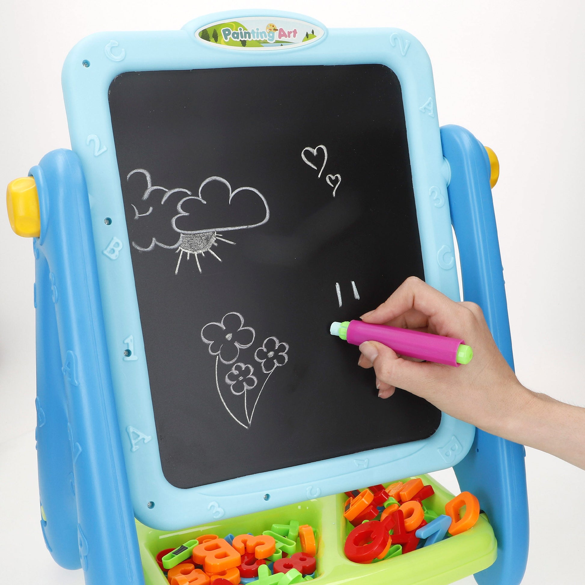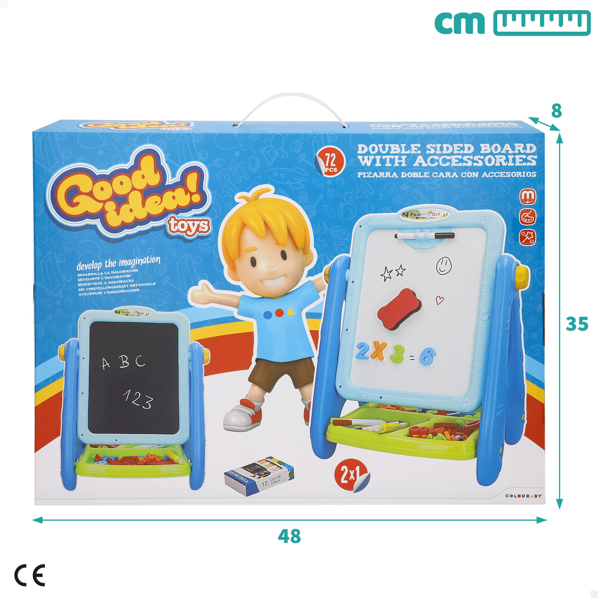Essequadro magnético infantil dupla faceTem tudo o que precisa para libertar a sua criatividade e aprender brincando. Com esta prancheta de desenho de dupla face, pode desenhar, escrever e praticar as suas primeiras letras e números de diferentes formas. De um lado,quadro branco magnéticoÉ perfeito para utilizar com as letras e números magnéticos incluídos no conjunto, bem como com marcadores apagáveis que permitem escrever e desenhar livremente. Por outro lado, olousaÉ ideal para usar com giz colorido. Pode alternar facilmente entre os lados simplesmente virando o quadro!