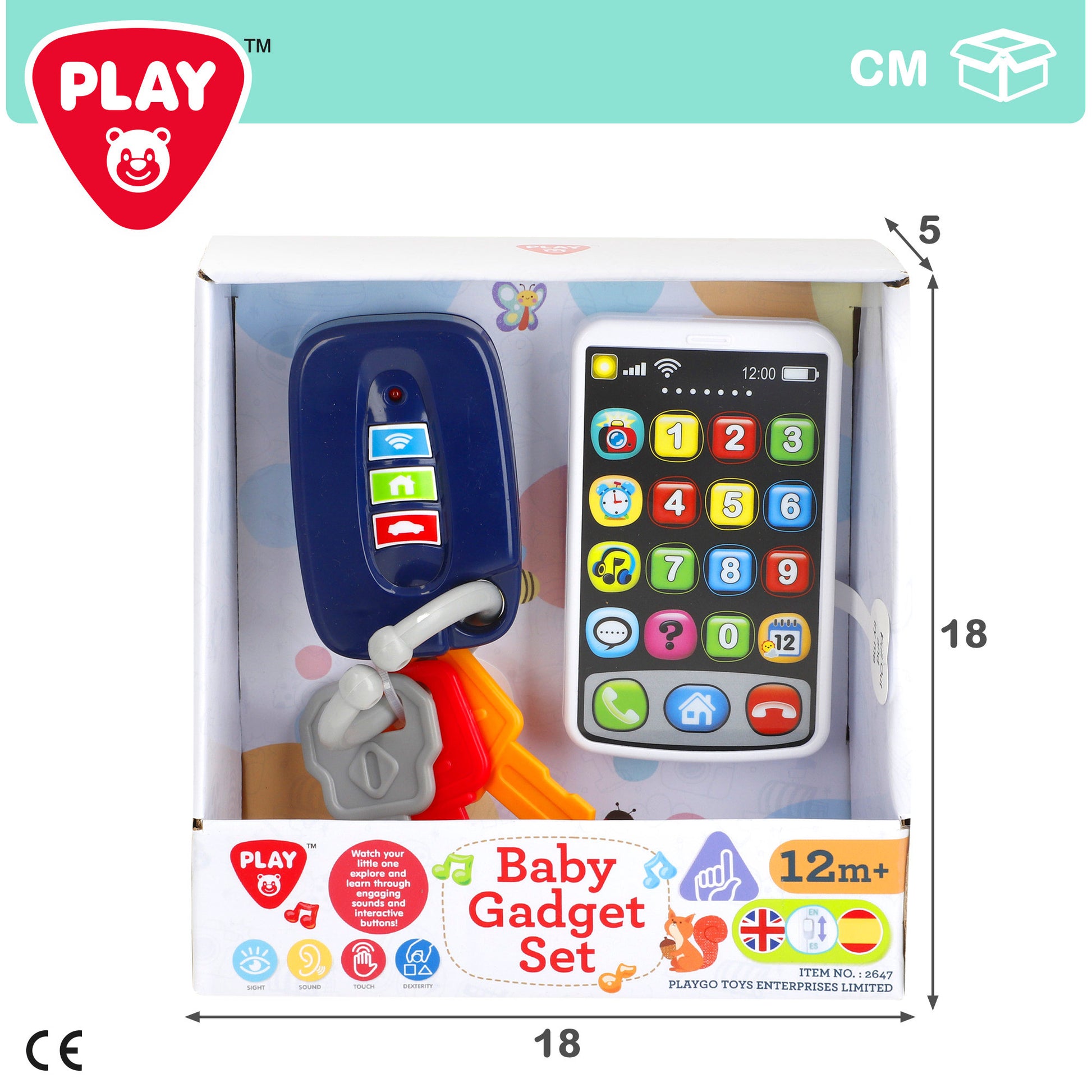 Este conjunto tem tudo o que precisa para se divertir no dia a dia: umTelefone com botões coloridosque ensinam números, sons e canções em espanhol e inglês, bem como umPorta-chaves com chaves e sons interativos.