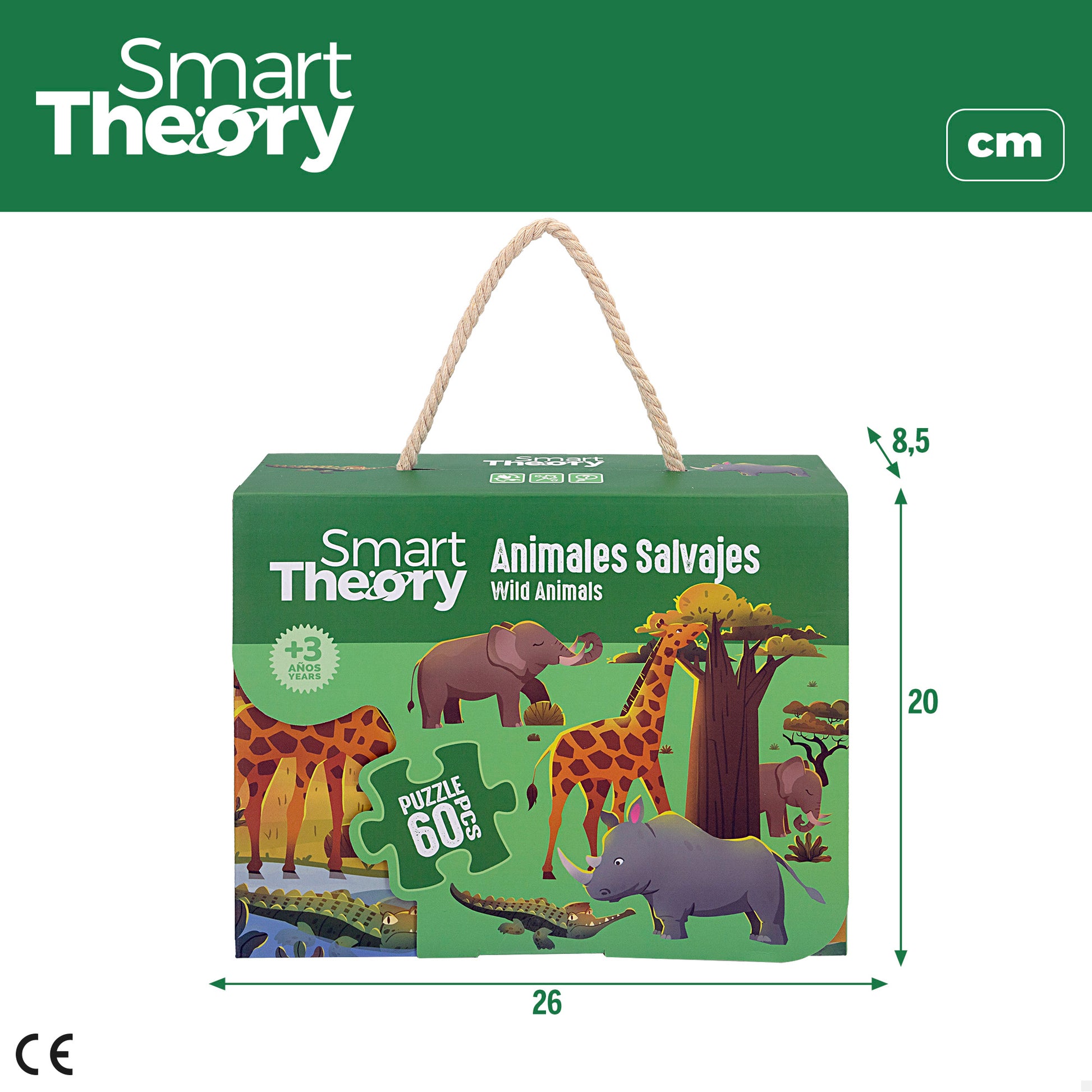 Diverte-te a montar este puzzle Smart Theory com animais selvagens e surpreende-te com o resultado final! É composto por 60 peças grandes, fáceis de manusear e de montar. Depois de montado, o puzzle retrata uma cena de animais migratórios a desfrutar da natureza e um merecido descanso após a viagem. Este jogo ajudará as crianças a reconhecer os diferentes animais da cena e a melhorar a memória e a coordenação motora. Além disso, se os seus filhos quiserem levá-lo para todo o lado, pode ser facilmente transportado graças à pega de corda incluída na embalagem.