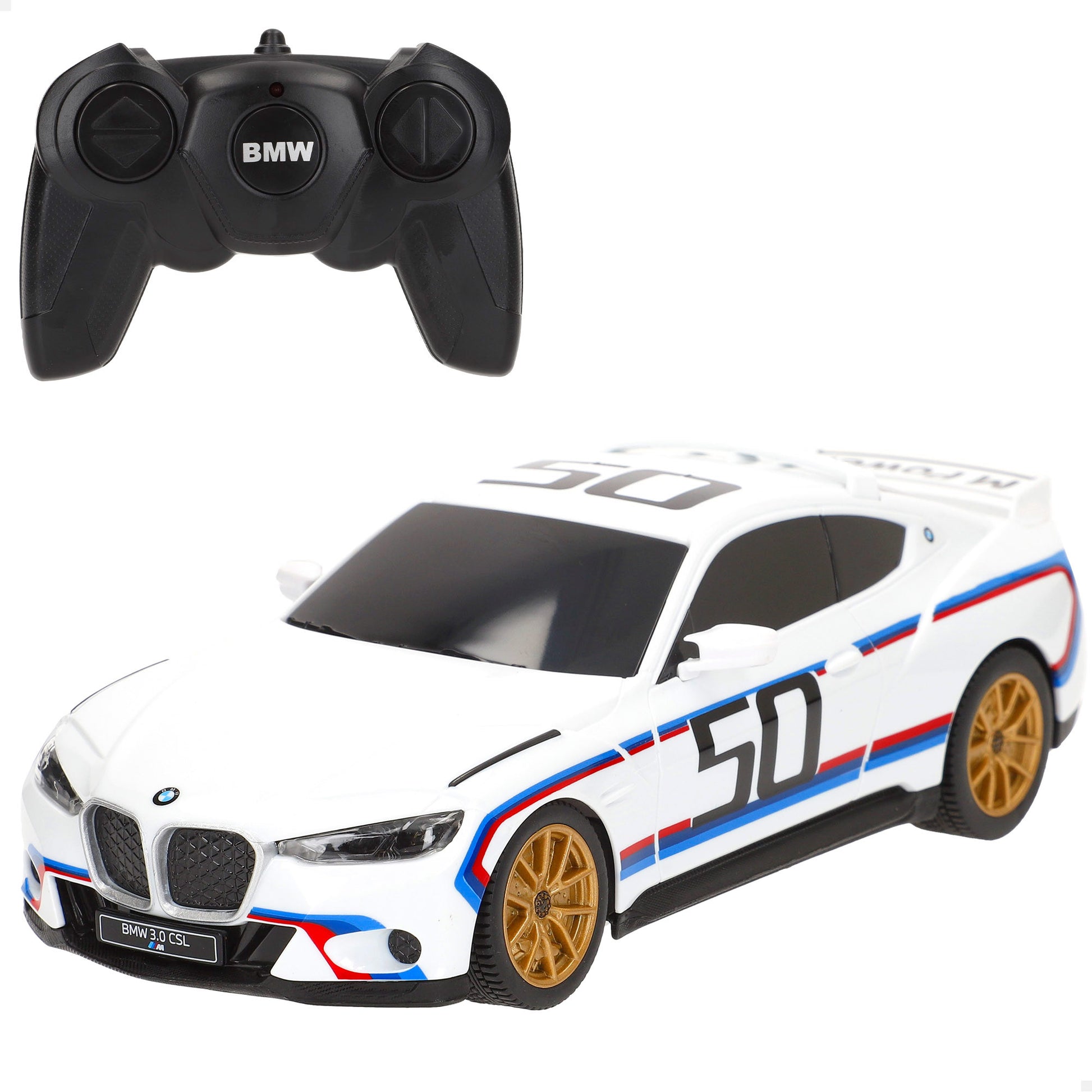 Sinta a emoção e desfrute do estilo lendário desta réplica de um clássico das corridas, controlado remotamente: oBMW 3.0 CSL. UmCarro de rádio controlo oficialmente licenciado à escala 1:24Destaca-se pelo design desportivo e acabamento de alta qualidade. A sua carroçaria branca, com detalhes em azul e vermelho e o icónico número 50, capta na perfeição a essência deste ícone automóvel. Possui ainda uma carroçaria moldada por injeção, suspensão independente e direção precisa. Perfeito para colecionadores e entusiastas do desporto automóvel!