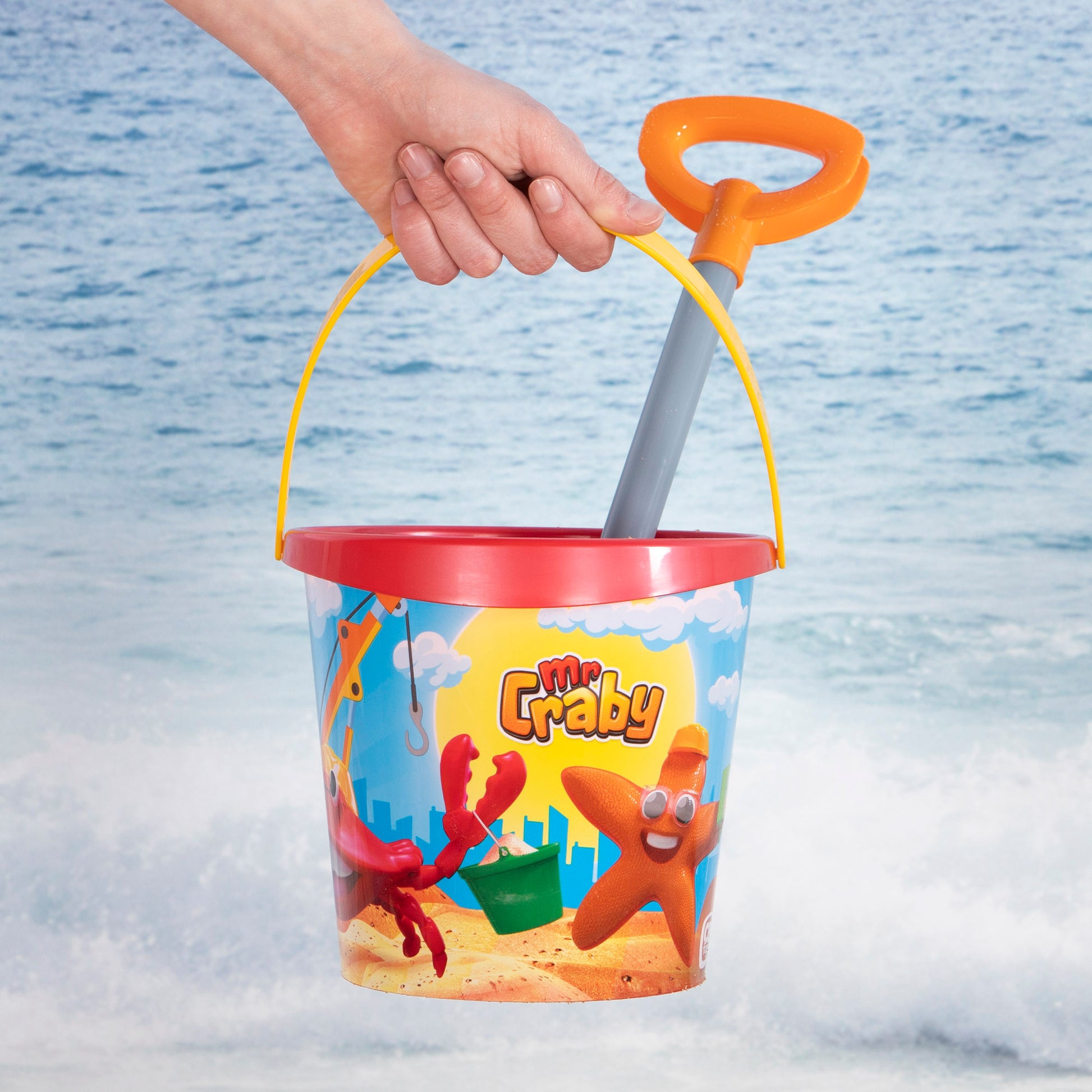 Este conjunto de praia apresenta um material durável.camião basculanteConcebido para ser facilmente manuseado por mãos pequenas, permitindo que as crianças transportem e depositem areia como verdadeiros profissionais da construção. Também inclui umbalde com pegaCom ilustrações do Sr. Craby,uma pá,um ancinhoedois moldesCom estruturas impressionantes que fazem lembrar castelos. Sinta-se como o rei ou a rainha do seu próprio castelo de areia!