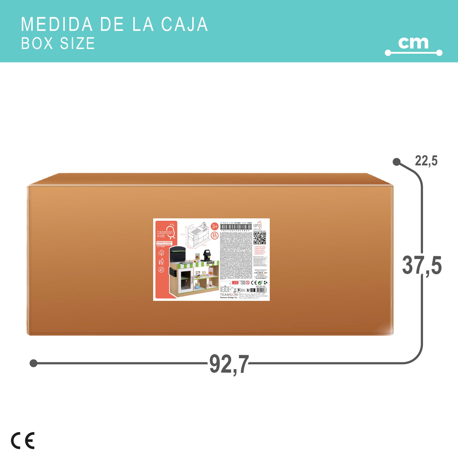 Atenda todos os seus clientes no supermercado de brinquedos Teamson! Este mini supermercado dispõe de um balcão de 80x30x80 cm (altura do balcão: 52 cm) com caixa registadora, calculadora, leitor de código de barras, leitor de cartões e gaveta de moedas, tapete rolante manual, quadro negro, armário e prateleiras. Inclui uma barra divisória, oito caixas com diversos artigos alimentares, um cartão de crédito e 16 notas/moedas de brincar. Acende luzes e emite sons e funciona com duas pilhas AA (não incluídas). Recomendado para crianças a partir dos 3 anos.