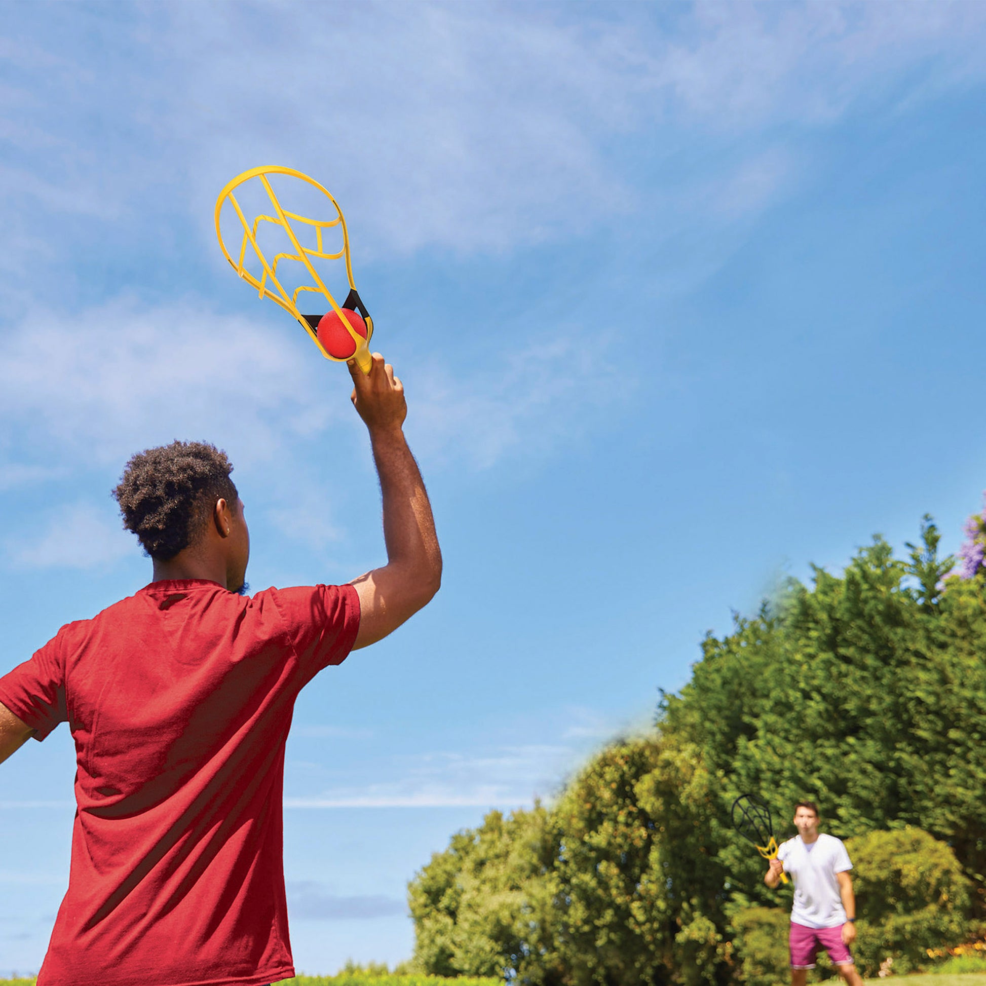Aproveite os dias ensolarados ao ar livre com este conjunto de raquetes Wham-O Trac-Ball! O conjunto inclui duas raquetes, uma amarela e outra preta, e duas bolas, uma vermelha e outra preta. As raquetes extragrandes têm um design curvo e aerodinâmico e são especialmente concebidas para lançar bolas a distâncias incríveis. Aprenda a executar diferentes golpes para surpreender o seu adversário! É um jogo intemporal, ideal para jogar ao ar livre com amigos ou família em qualquer altura do ano. É também perfeito para se manter ativo e incentivar a atividade física. Que comecem os jogos!
