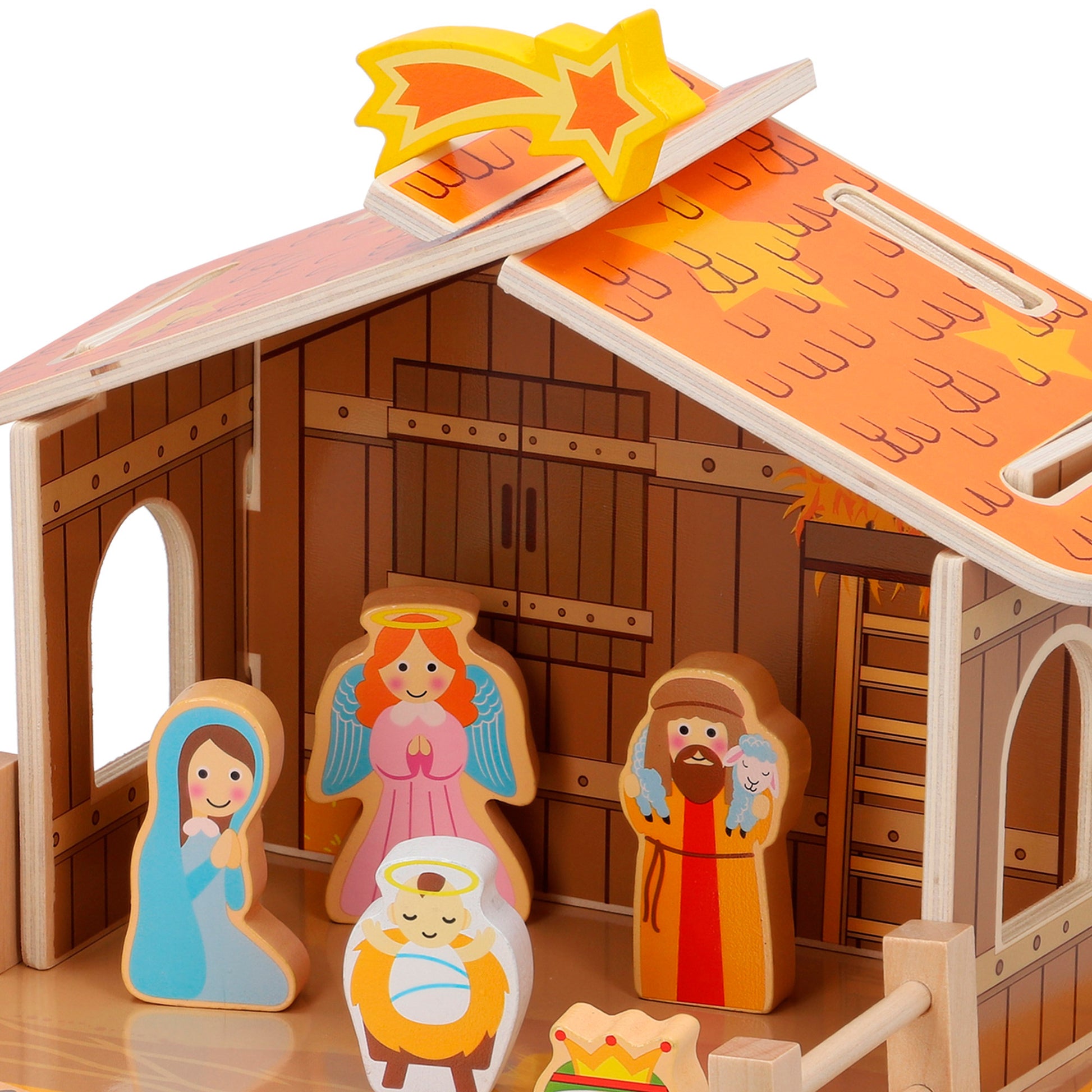 Será que os Três Reis Magos chegarão a tempo ao presépio? Monte o seu próprio presépio de madeira e deixe tudo pronto para o dia mais especial do ano. Este jogo de encaixe inclui 20 peças (8 figuras humanas e 2 animais), além de tudo o que precisa para criar o presépio. O brinquedo e as suas peças têm bordos lisos e arredondados. Recomendado para crianças a partir dos 3 anos. Desenvolve a imaginação, a coordenação motora e o conhecimento das tradições. Este brinquedo faz parte da iniciativa "Partilhar e Reciclar", uma ação solidária da Fundação Crecer Jugando que recolhe brinquedos para doação a instituições de solidariedade espanholas.
