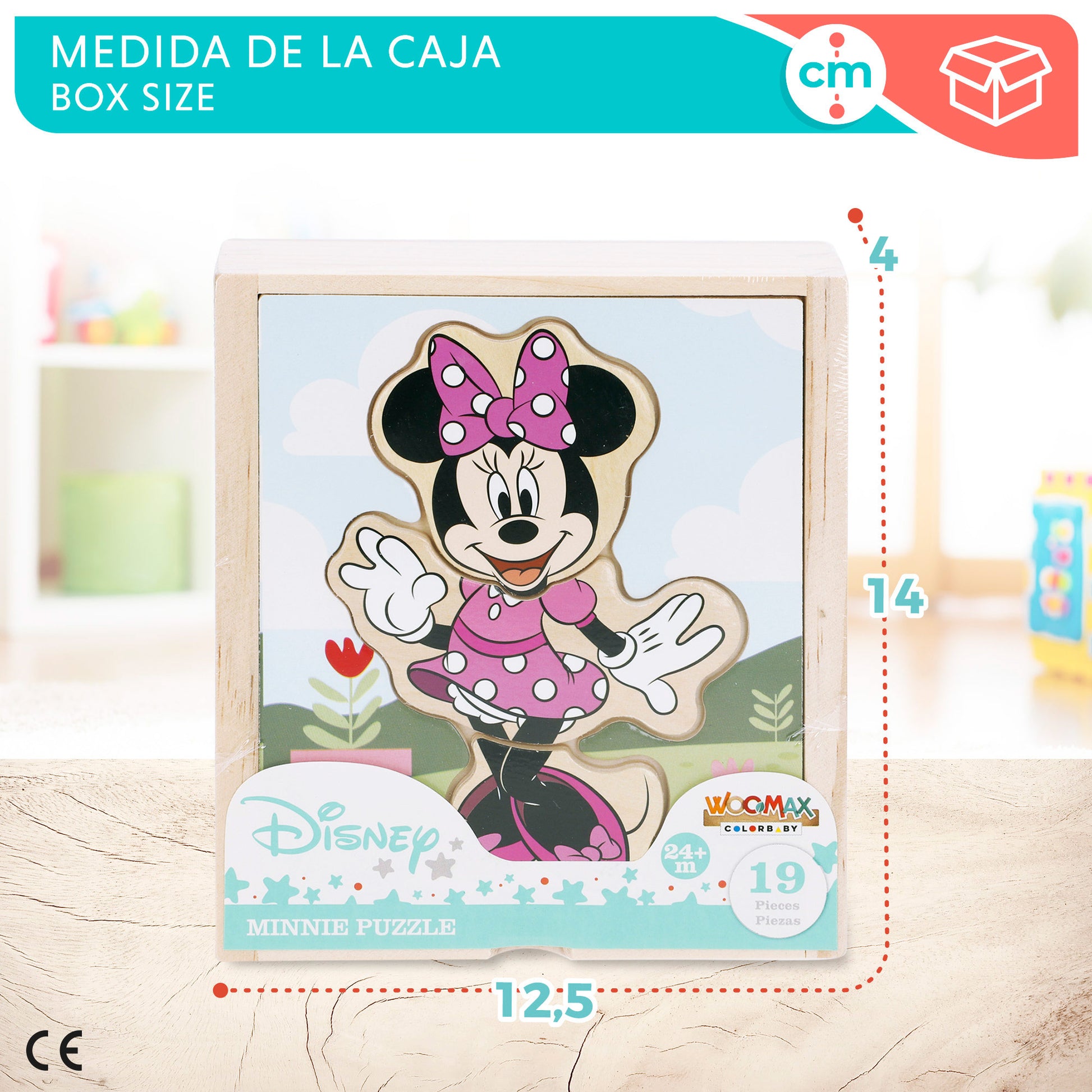 Encaixe as peças! Este puzzle WOOMAX Disney Minnie Mouse é feito de madeira natural e sustentável. Inclui 19 peças do Mickey Mouse e 6 roupinhas para que possa vestir a Minnie para qualquer ocasião com os seus melhores vestidos e acessórios. Este brinquedo é recomendado para crianças a partir dos 24 meses e ajuda a desenvolver o raciocínio lógico e a coordenação motora.