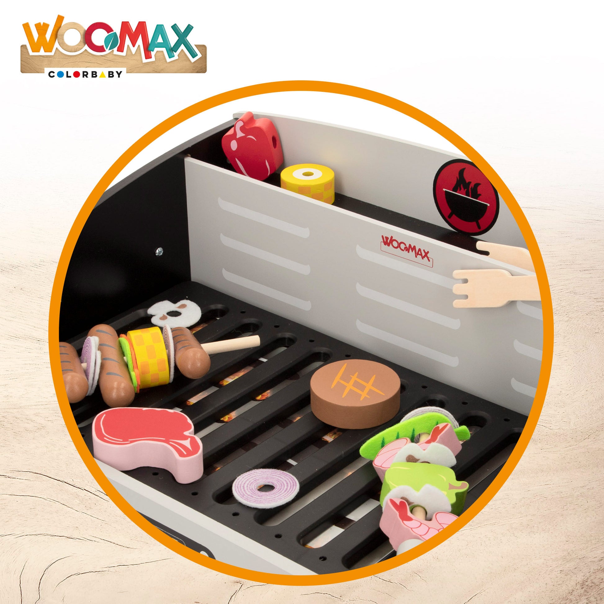 Prepare um delicioso churrasco com a mesa de madeira para brincar com a comida da WOOMAX. Inclui salsichas, hambúrgueres e legumes para cozinhar refeições saborosas para toda a família. A churrasqueira tem 50,5 x 34 x 23,5 cm e é feita de madeira natural com botões que giram e emitem um som mecânico. Recomendado para crianças a partir dos 2 anos. Este brinquedo faz parte da iniciativa "Partilhar e Reciclar", uma ação solidária da Fundação Crecer Jugando que recolhe brinquedos para doação a instituições de solidariedade espanholas.