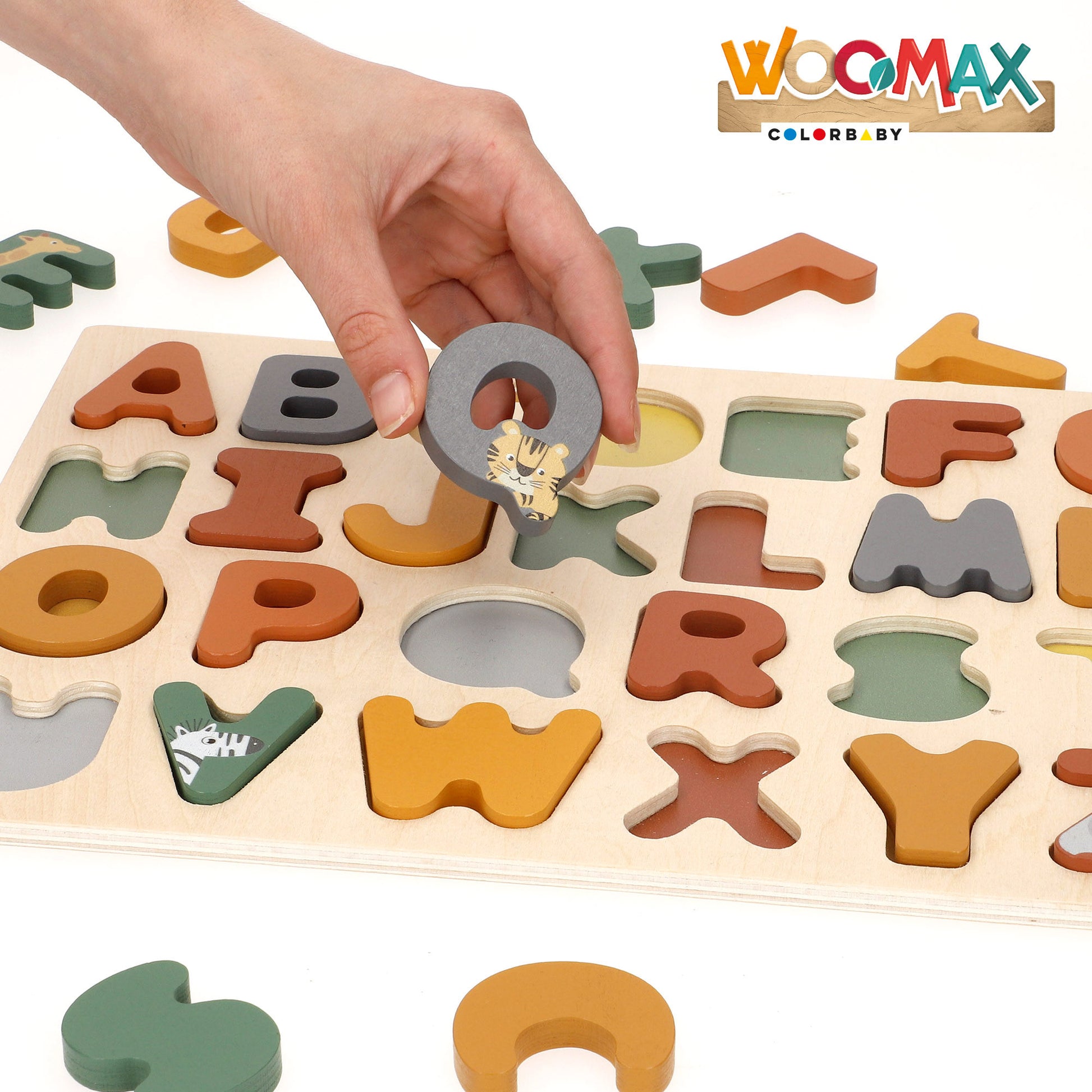 Embarque numa aventura divertida com oPuzzle de encaixe WOOMAXEste brinquedo de madeira,Concebido para mãos pequenasAprender o alfabeto torna-se uma experiência fácil e divertida. Coloque cada letra no seu lugar e... descubra um mundo cheio de formas, cores e aprendizagens!