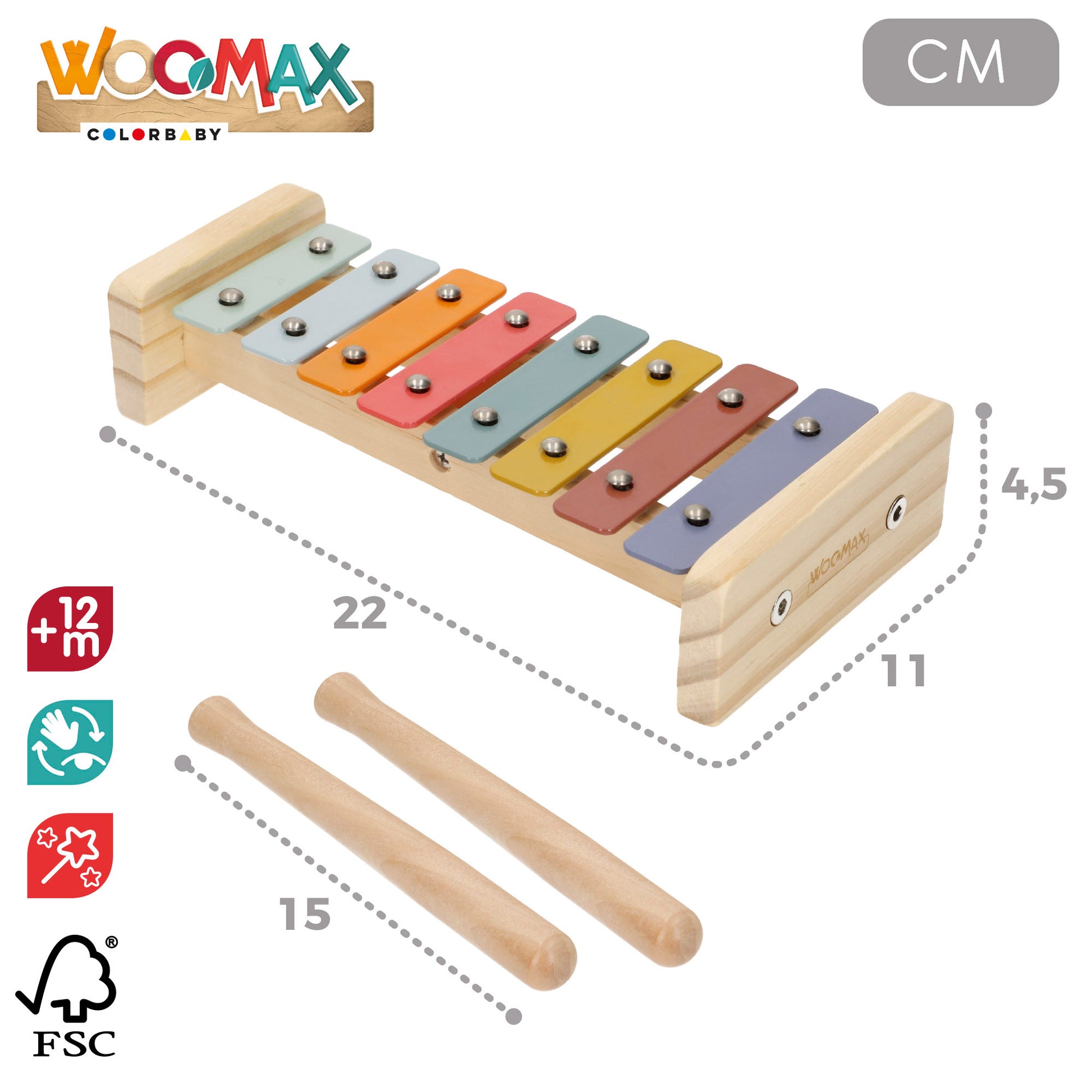 Aprenda as primeiras notas musicais desde muito jovem e divirta-se!Xilofone WOOMAX! Esseinstrumento musical de brinquedoEste brinquedo apresenta peças musicais coloridas que o vão surpreender. Pode descobrir novos sons e compor as suas próprias melodias. Um brinquedo de madeira ideal para começar a explorar a arte da música!