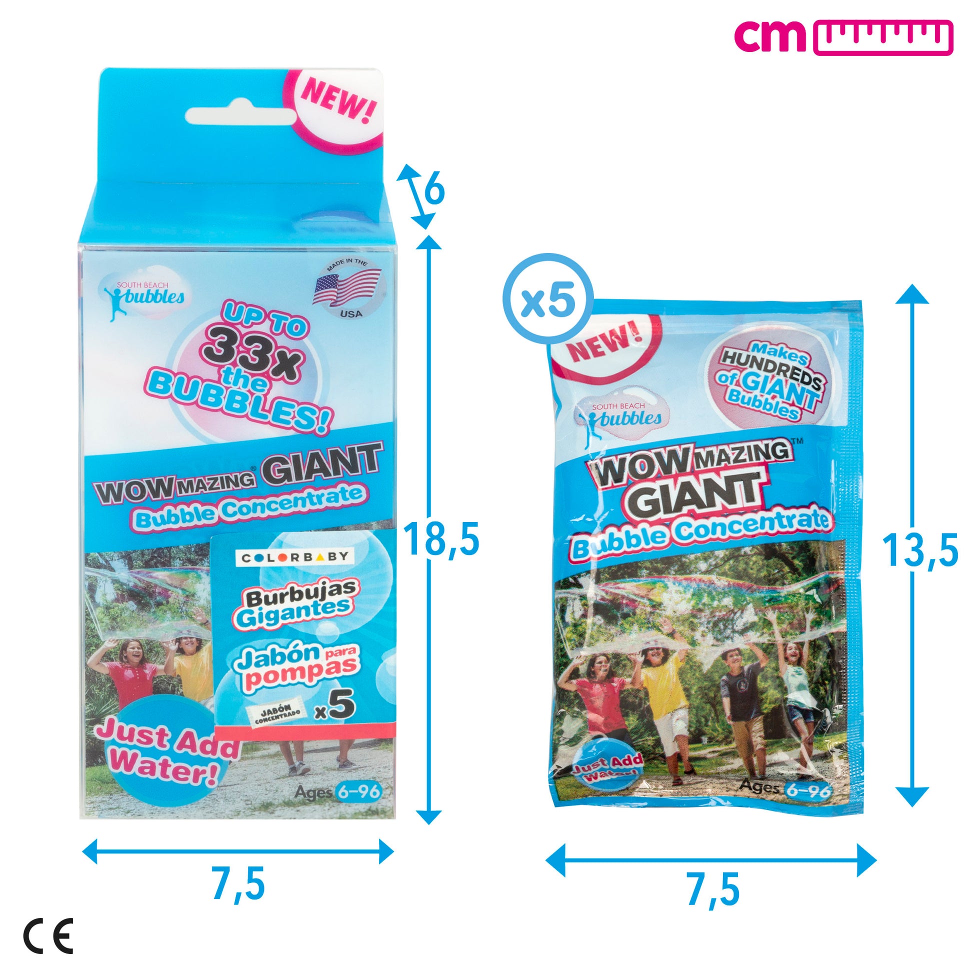 Uau, uau, uau, estas bolhas são para ti! Uau, uau, uau, vais divertir-te muito! Uau, uau, uau, o melhor dos melhores! Nada te vai impedir de criar as maiores bolas de sabão de sempre! Vais conseguir fazer as melhores bolhas graças a estas bolhas!saquetas de sabão concentrado, cujoA fórmula é patenteada, de qualidade superior e segura para crianças.Basta seguir estes passos simples para fazer bolhas gigantes. Primeiro, adicione uma saqueta inteira de sabão concentrado WOWmazing a um balde. De seguida, adicione 4 chávenas de água e, por fim, mexa a mistura delicadamente para evitar a formação de demasiada espuma. Agora está pronto para mergulhar as varinhas WOWmazing no balde e começar a criar centenas de bolhas gigantes!